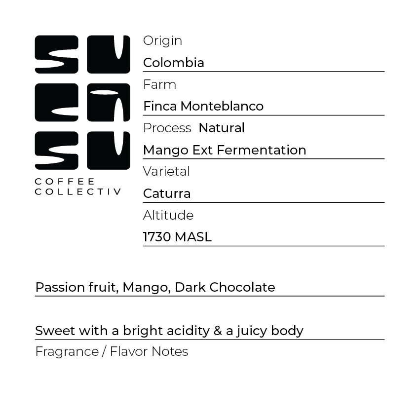 Home Coffee Roasted Coffee Colombia -Finca Monteblanco Mango 🔍 Home Coffee Roasted Coffee Colombia -Finca Monteblanco Mango 27.00 $ – 97.00 $Price range: 27.00 $ through 97.00 $ Colombia -Finca Monteblanco MangoNatural weight Choose an option250g1000g Grind Choose an optionEspressoFilterFrench PressBeanClear Colombia -Finca Monteblanco Mango quantity Add to cart About this coffeePassion Fruit, Mango, Dark Chocolate. Related products Cold WashedColombia – Finca Monteblanco Pink Bourbon 27.00 $ – 97.00 $Price range: 27.00 $ through 97.00 $ Baroida HoneyPapua New Guinea – Baroida Honey 18.00 $ – 59.00 $Price range: 18.00 $ through 59.00 $ NaturalColombia – Cuatro Vientos 24.00 $ – 81.00 $Price range: 24.00 $ through 81.00 $